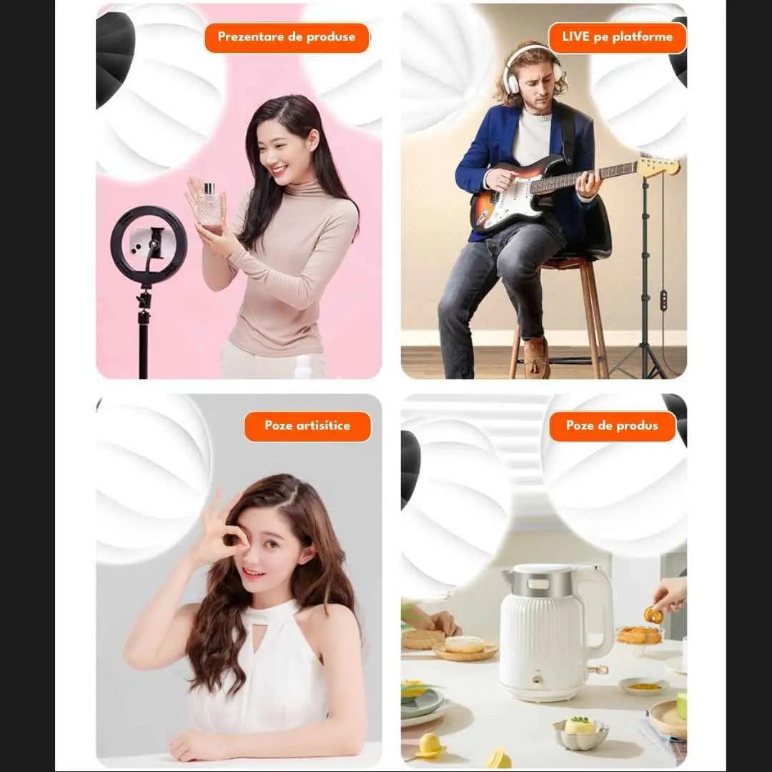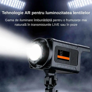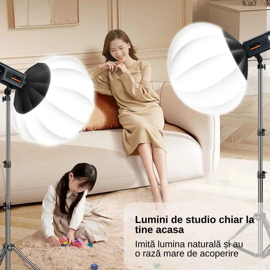 Kitul de lumini pentru studio foto-video cu lampa LED 100W si softbox ofera iluminare profesionala reglabila intre 3200K si 5500K (rece, calda, neutra). Control rapid prin telecomanda, suport pe trepied stabil de 1.8m si instalare usoara. Ideal pentru fotografie de produs, portrete, filmari YouTube sau live streaming. Transforma orice spatiu intr-un mini-studio.