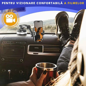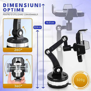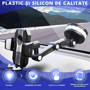 Suport auto pentru telefon, sistem de prindere a ventuzei reglabile, ajustare unghi suport si brat 360 la Grade, telescopic, reglabil si rotativ