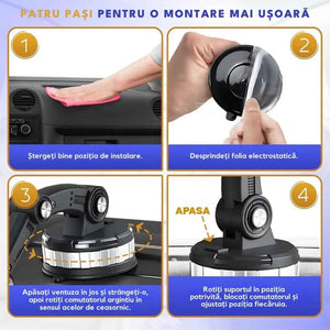 Sistem de Prindere Avansat: Ventuza reglabila garanteaza o fixare solida pe parbriz sau tabloul de bord. Siguranta telefonului tau este acum prioritatea noastra!
