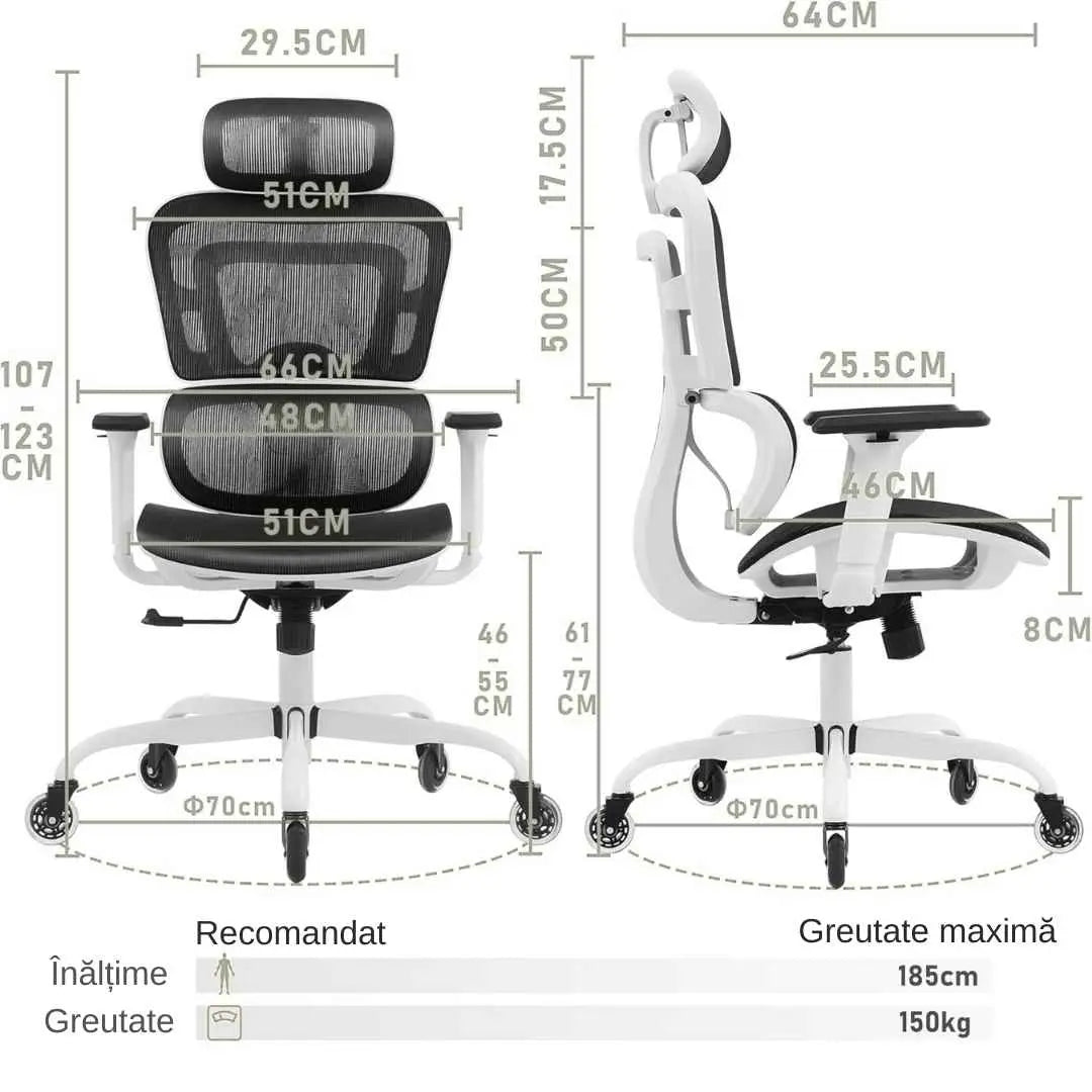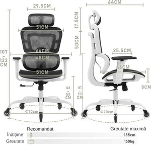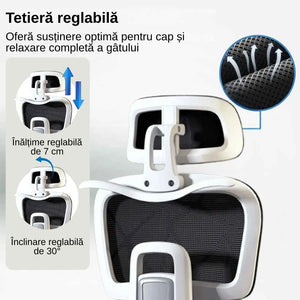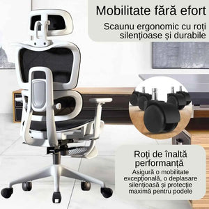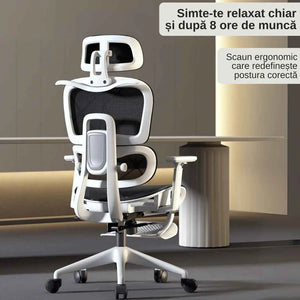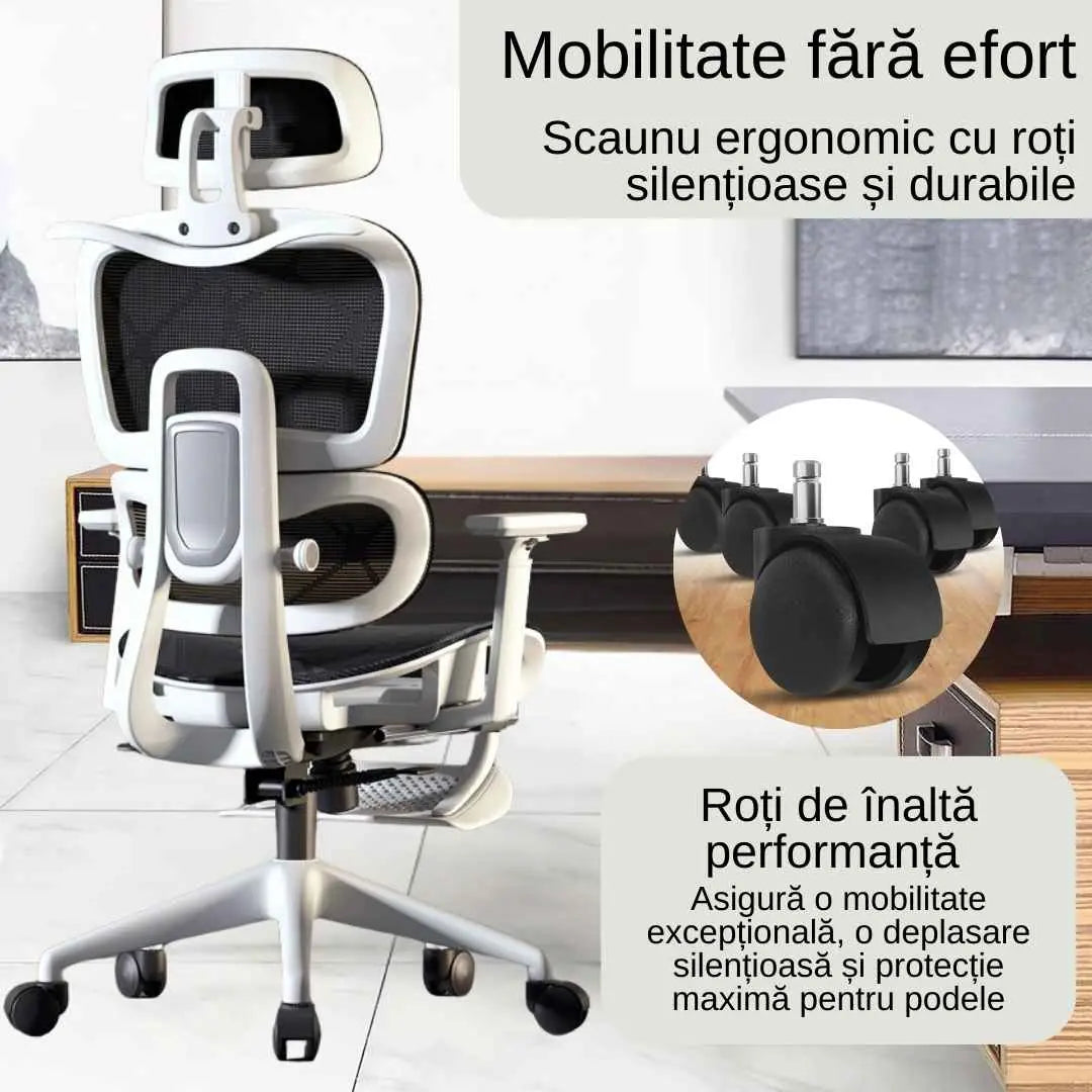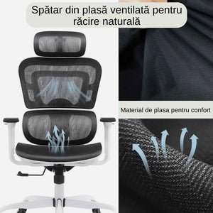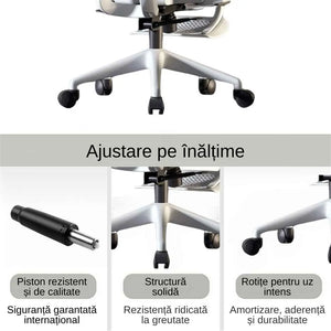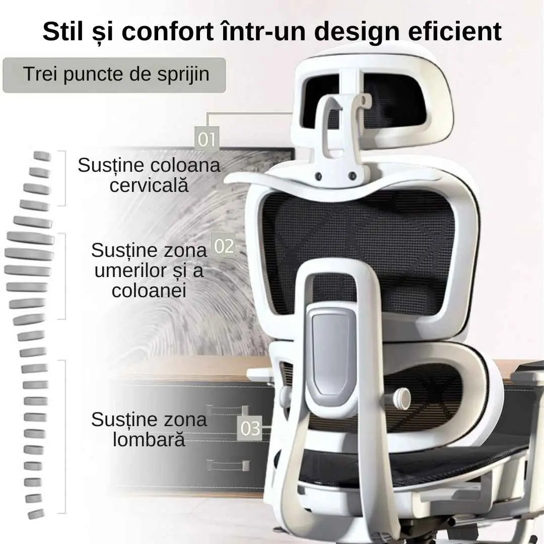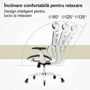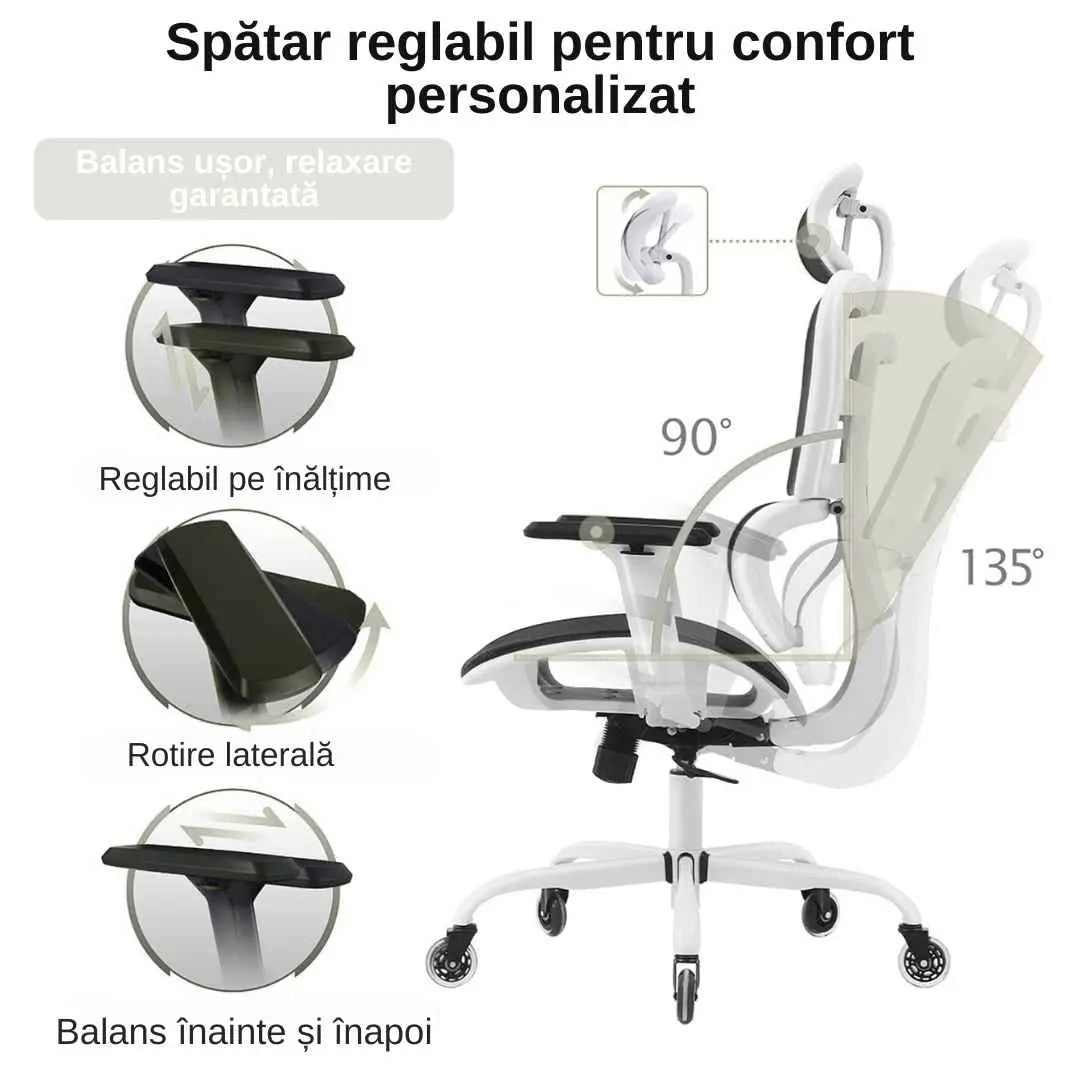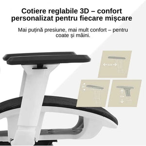 Scaun ergonomic, reglare inaltime spatar, 6 pozitii 135°, cotier 4D, material respirabil plasa mesh, suport picioare retractabil, profil lombar flexibil