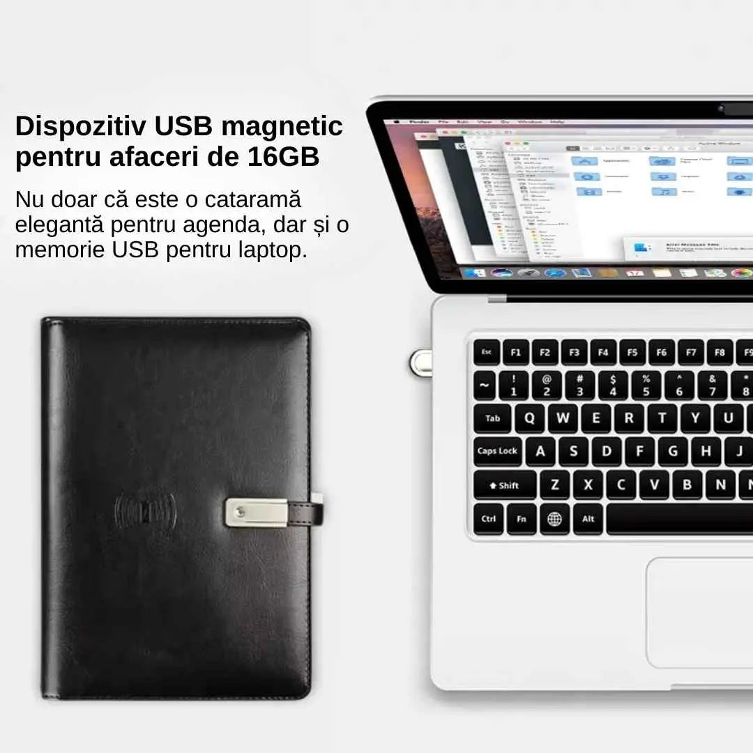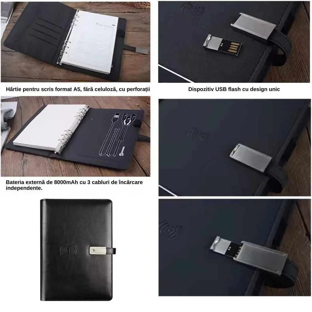 Set agenda inteligenta premium, pix business si termos inteligent cu ecran LED, incarcare wireless, baterie externa incorporata 8000mAh, USB 16GB, cabluri 3 in 1, format A5