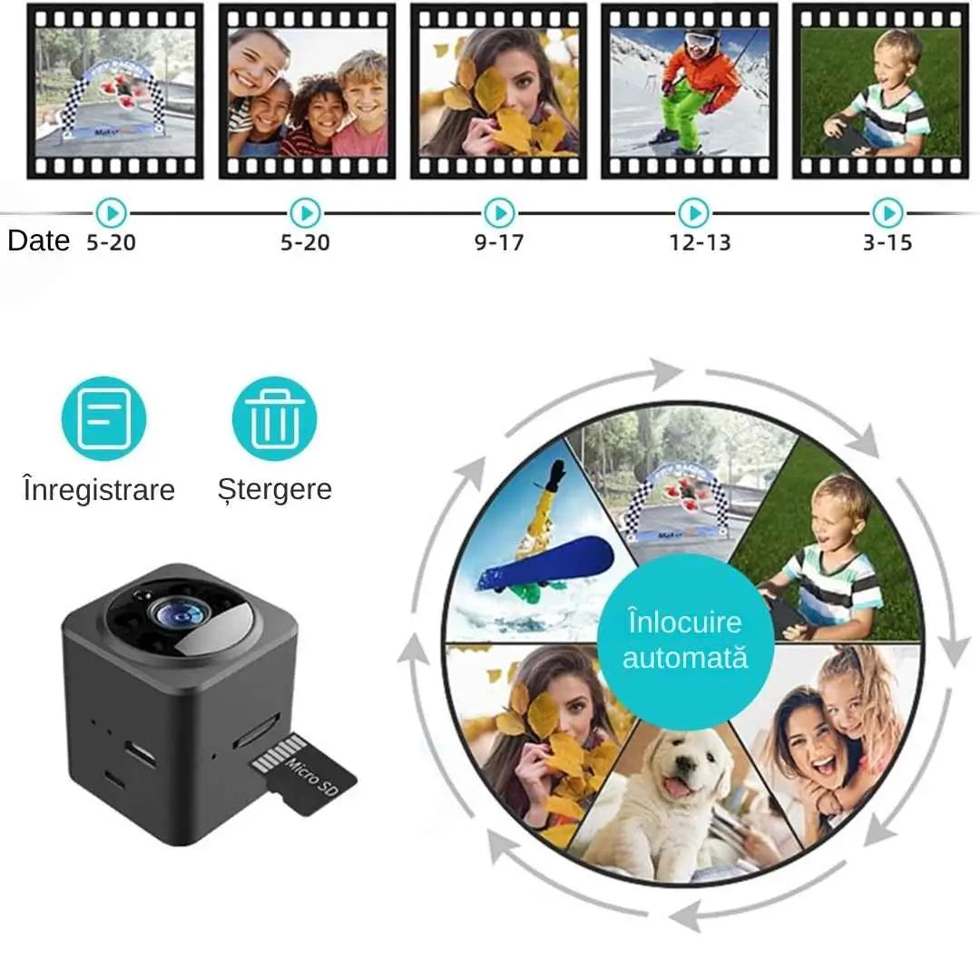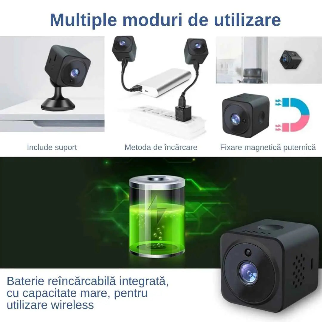 Functionalitatea de viziune pe timp de noapte a acestei mini-camere spion aduce un sentiment de securitate si liniste pentru utilizatori. Cu cele 6 lumini infrarosii ascunse incorporate, aceasta permite o afisare clara chiar si in conditii de iluminare slaba, fara a emite nicio stralucire vizibila. Fie ca doriti sa va monitorizati locuinta, sa va supravegheati animalele de companie sau sa va asigurati siguranta biroului, aceasta capacitate de vizibilitate pe timp de noapte va asigura ca nu veti pierde niciun detaliu important, chiar si pe intuneric.