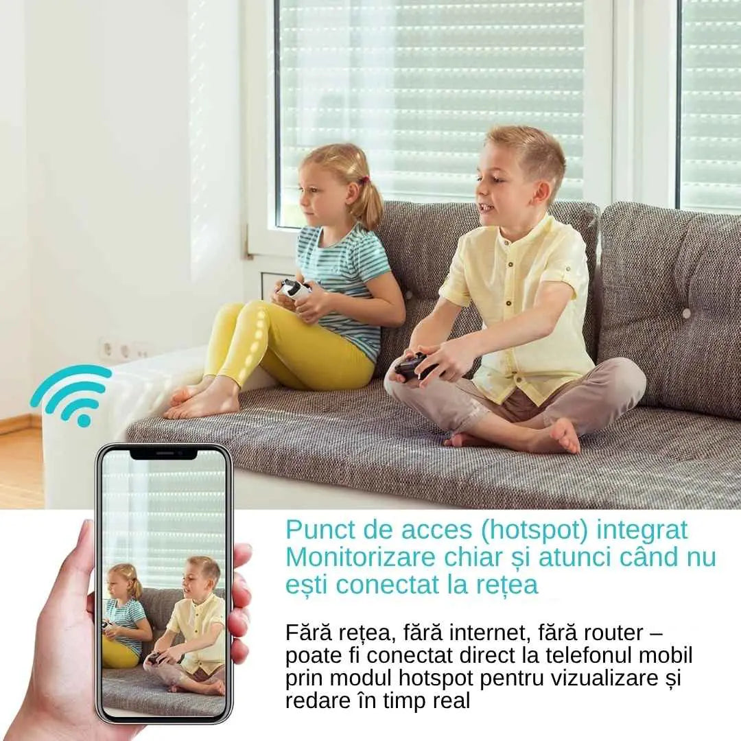 • Utilizare versatila: Ideala pentru securitatea locuintei sau copiilor, monitorizarea animalelor de companie, supravegherea birourilor si multe altele.