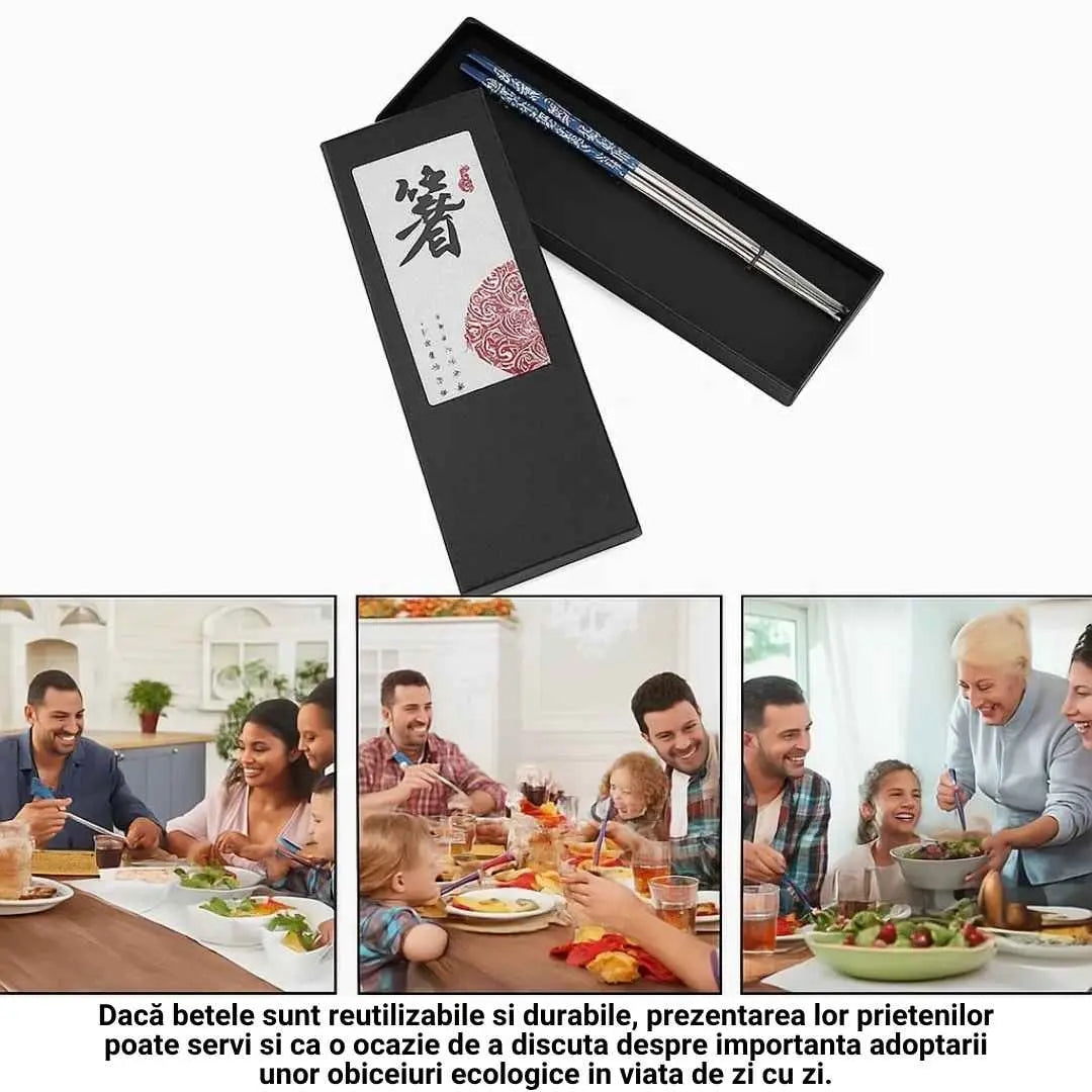 Durabile, reutilizabile si usor de intretinut, betele chinezesti cu model din Titan imbina aspectul estetic cu utilitatea practica, transformand experienta culinara intr-un moment placut si sofisticat. Indiferent de bucataria preferata sau de tipul de mancare pregatit, aceste bete adauga o nota distincta si eleganta fiecari mese.