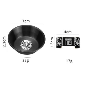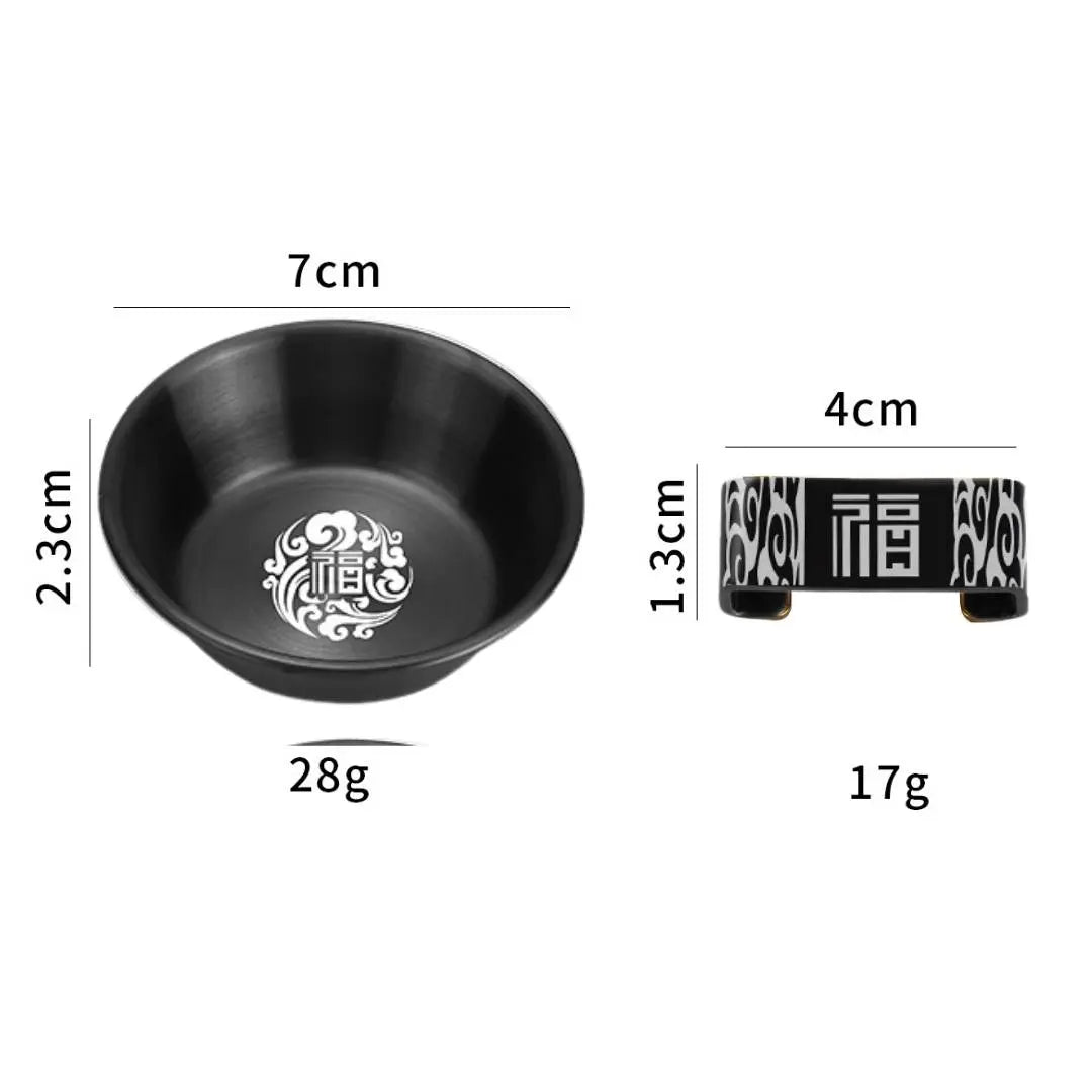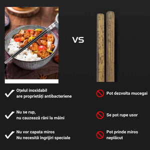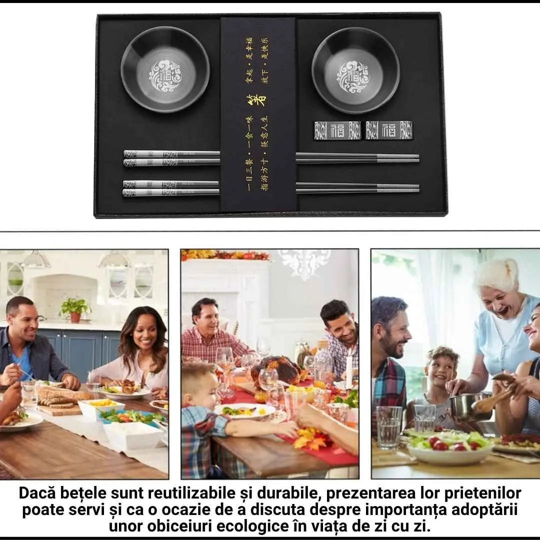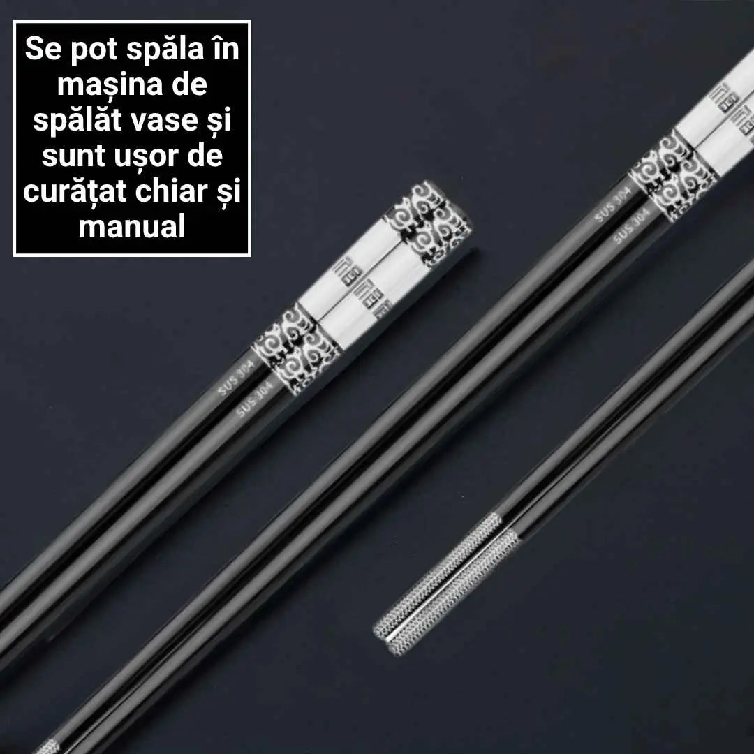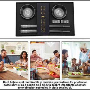 Set bete chinezesti traditionale, din otel inoxidabil, 2 mini boluri incluse, cu imprimeuri, reutilizabile, anti-derapante, rezistente la spalare, pentru servirea mesei