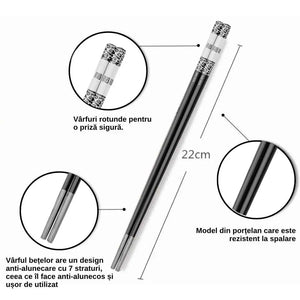 Prindere sigura: Forma ergonomica a betelor permite o prindere sigura si confortabila. Aceasta face ca manipularea mancarii sa fie mai usoara si mai precisa, indiferent daca este vorba de sushi, orez sau alte tipuri de mancare.