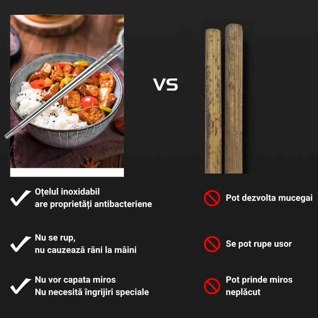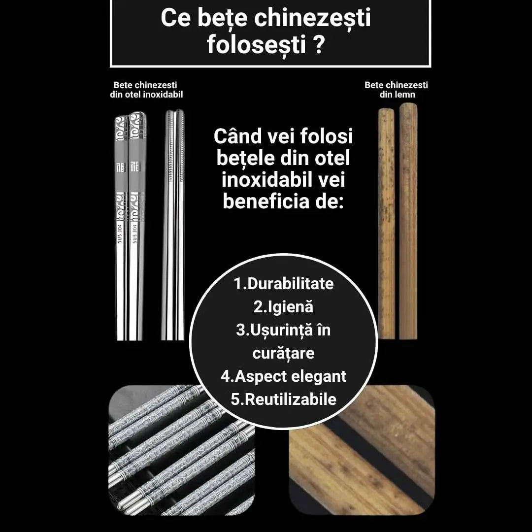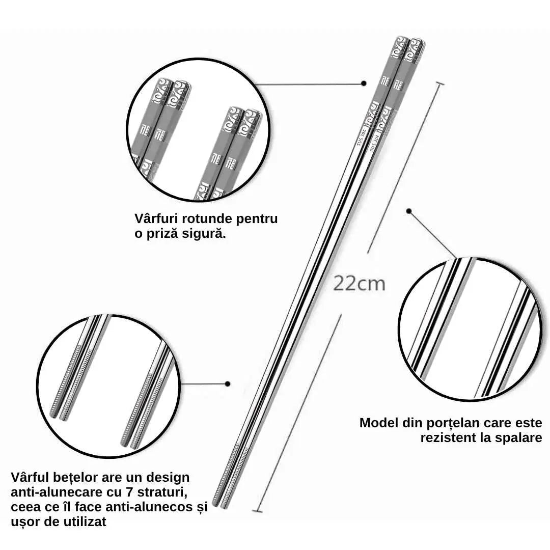 Adaptabilitate la diverse tipuri de mancare: Betele sunt concepute pentru a face fata diferitelor tipuri de mancare, de la sushi si roll-uri pana la legume sau carne. Va permit sa savurati fiecare bucata cu precizie.