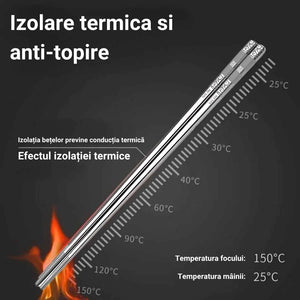 Prin alegerea betelor din otel inoxidabil, te bucuri de un produs robust, igienic si usor de intretinut, care va ramane o investitie valoroasa in timp. Otelul inoxidabil este usor de curatat si mentinut. Acesta este un material non-poros, ceea ce inseamna ca este mai putin predispus la acumularea bacteriilor si a altor microorganisme. Materialul din otel inoxidabil confera un aspect modern si elegant setului de bete. Acesta poate rezista la temperaturi extreme, ceea ce face ca aceste bete sa fie potrivite pentru diverse stiluri de gatit, inclusiv pentru preparate care implica temperaturi ridicate.