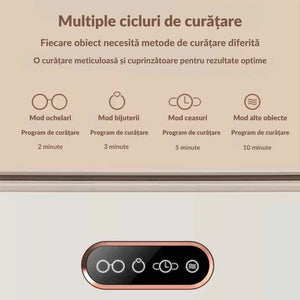 • 4 moduri inteligente de curatare – personalizezi durata in functie de obiect (2, 3, 5 sau 10 minute) pentru rezultate perfecte de fiecare data.