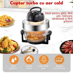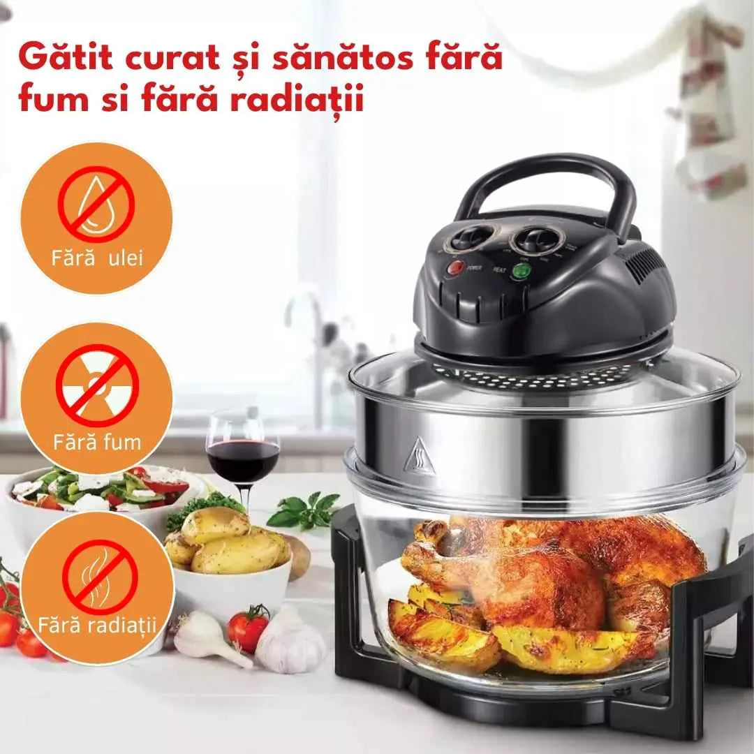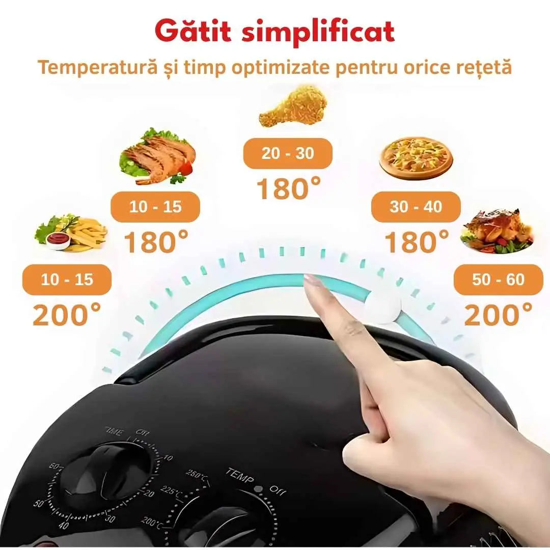 Friteuza cu aer cald Airfryer multifunctionala este investitia inteligenta in sanatatea si confortul familiei tale. Nu mai pierde timp si energie cu metode invechite de gatit – alege tehnologia care lucreaza pentru tine!