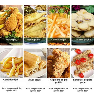 Controleaza temperatura precisa (0-190°C) pentru a obtine gatirea perfecta a alimentelor tale, de la cartofi prajiti crocanti pana la legume moi si suculente.