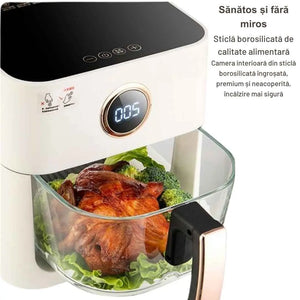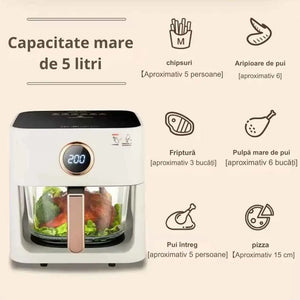 Friteuză cu aer cald, capacitate 5L, vas din sticlă transparentă