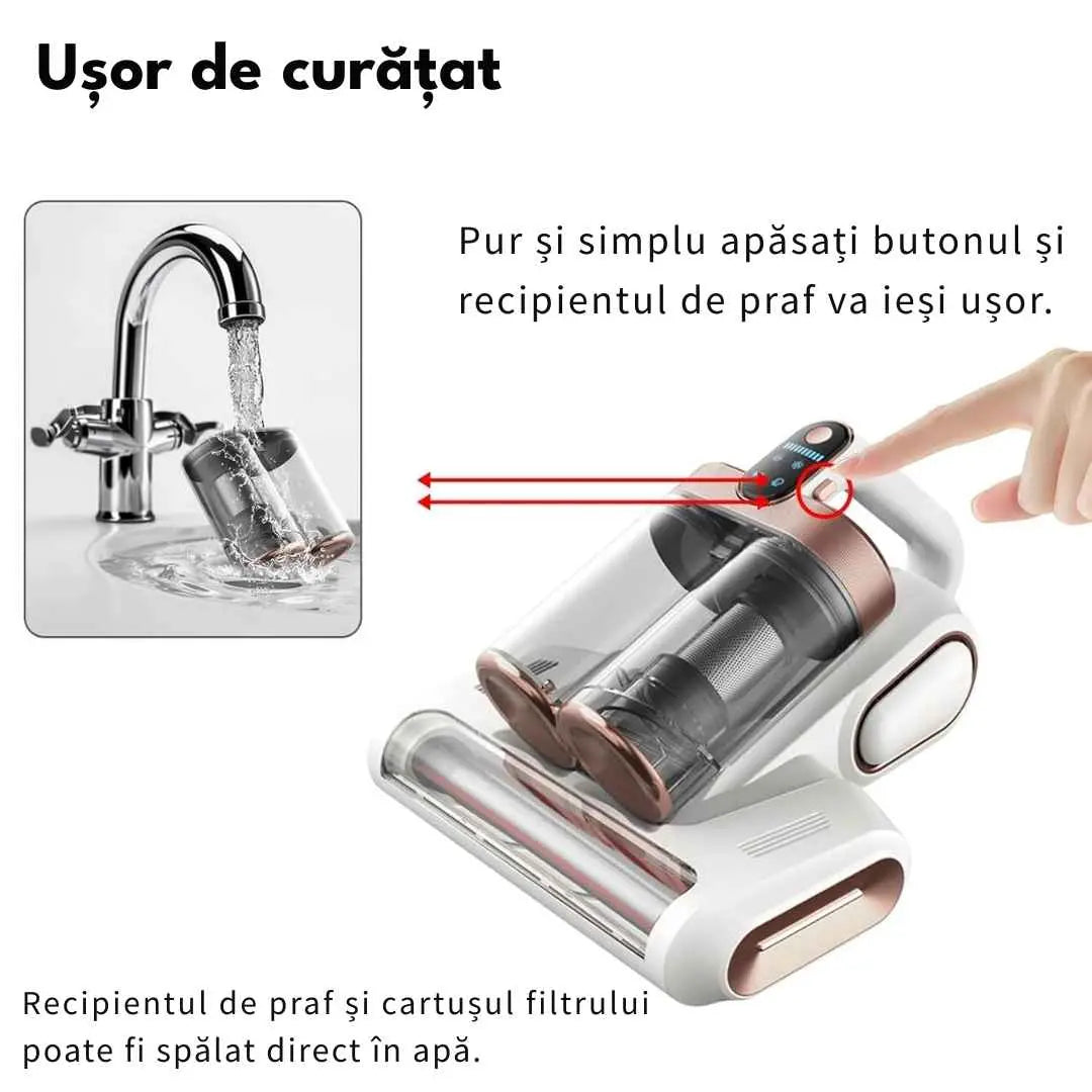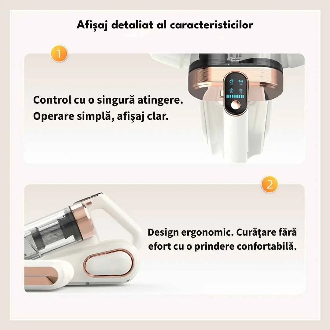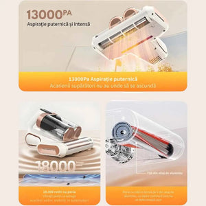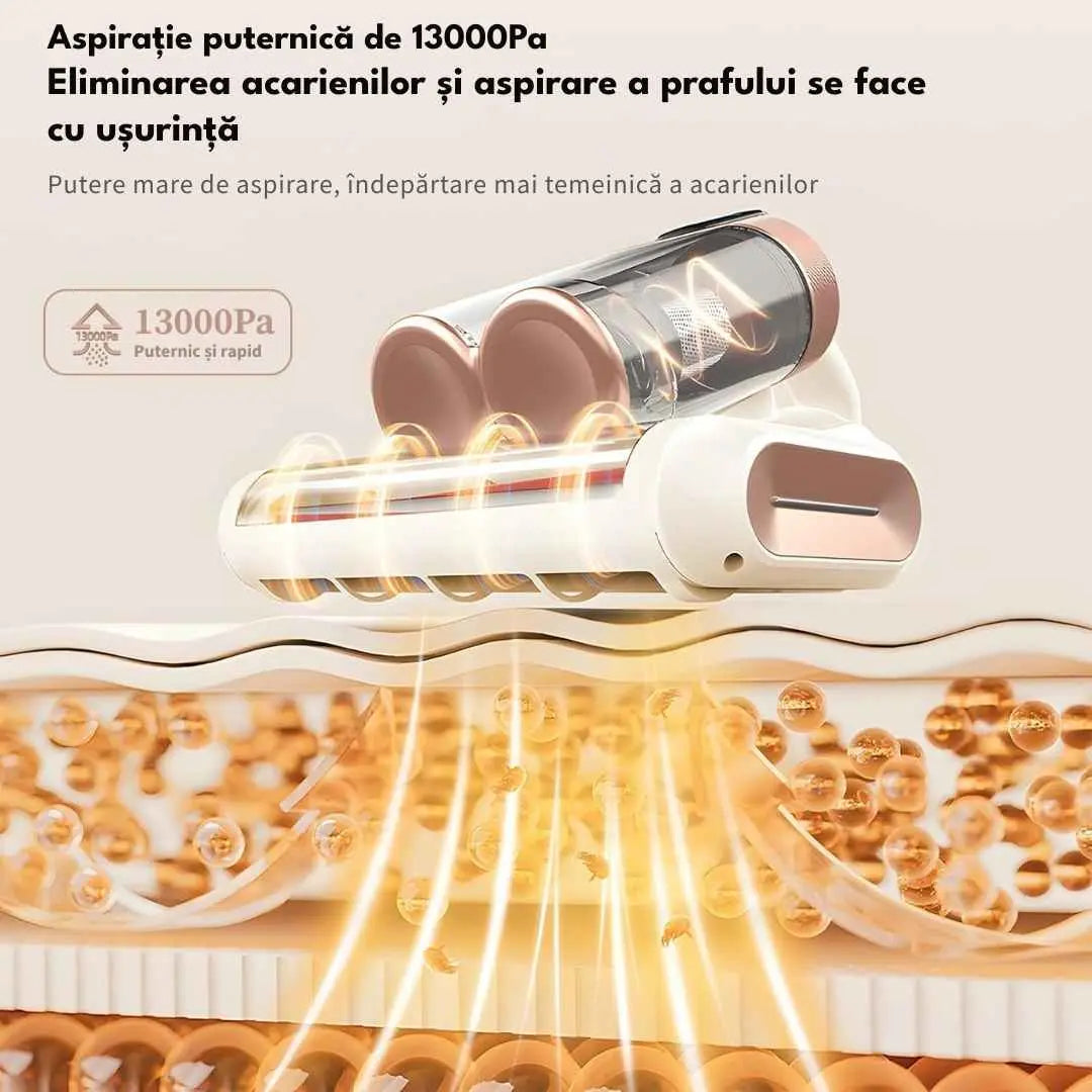 Aspirator portabil anti-acarieni fără fir – 13000Pa, sterilizare UV și ultrasunete
