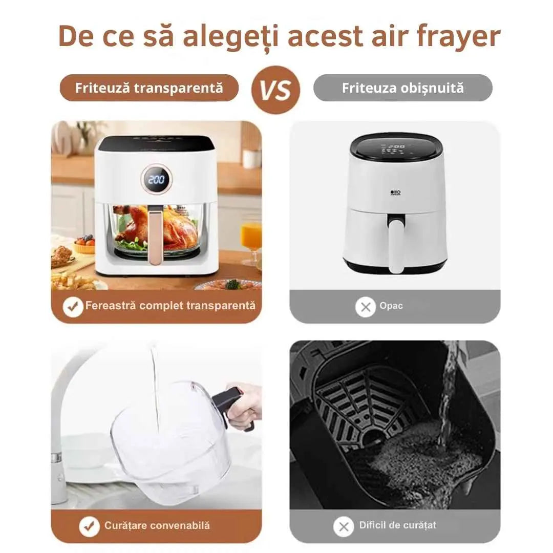 Friteuză cu aer cald, capacitate 5L, vas din sticlă transparentă