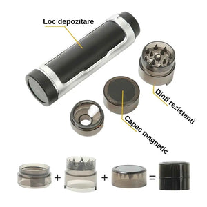 • Performanta de Precizie: Cu sistemul sau de taiere avansat, aceasta rasnita te va impresiona prin modul in care transforma ierburile sau tutunul intr-o macinatura uniforma, esentiala pentru un amestec optim.