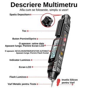 Acasă Multimetru digital 3 in 1, eisplay digital, functii multiple, detectare NCV, 0.8-600V, lanterna incorporata, inductie a campului electric, test continuitate, tester de diode