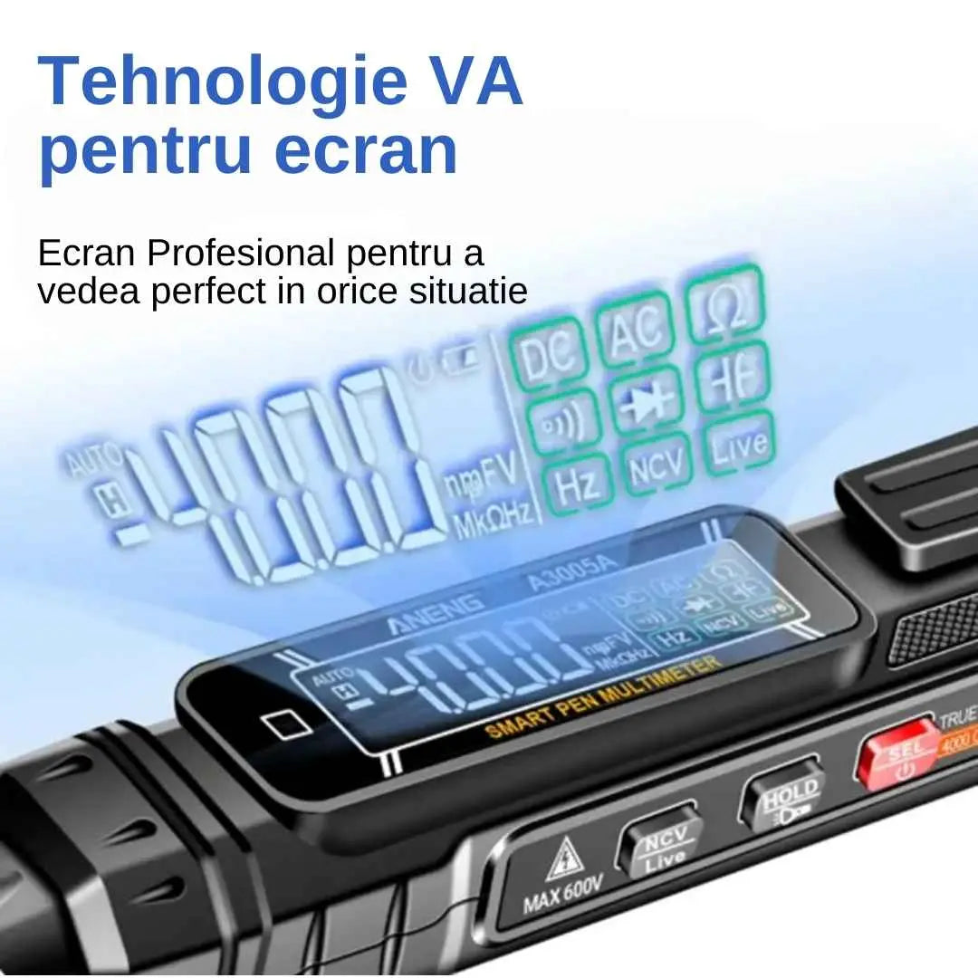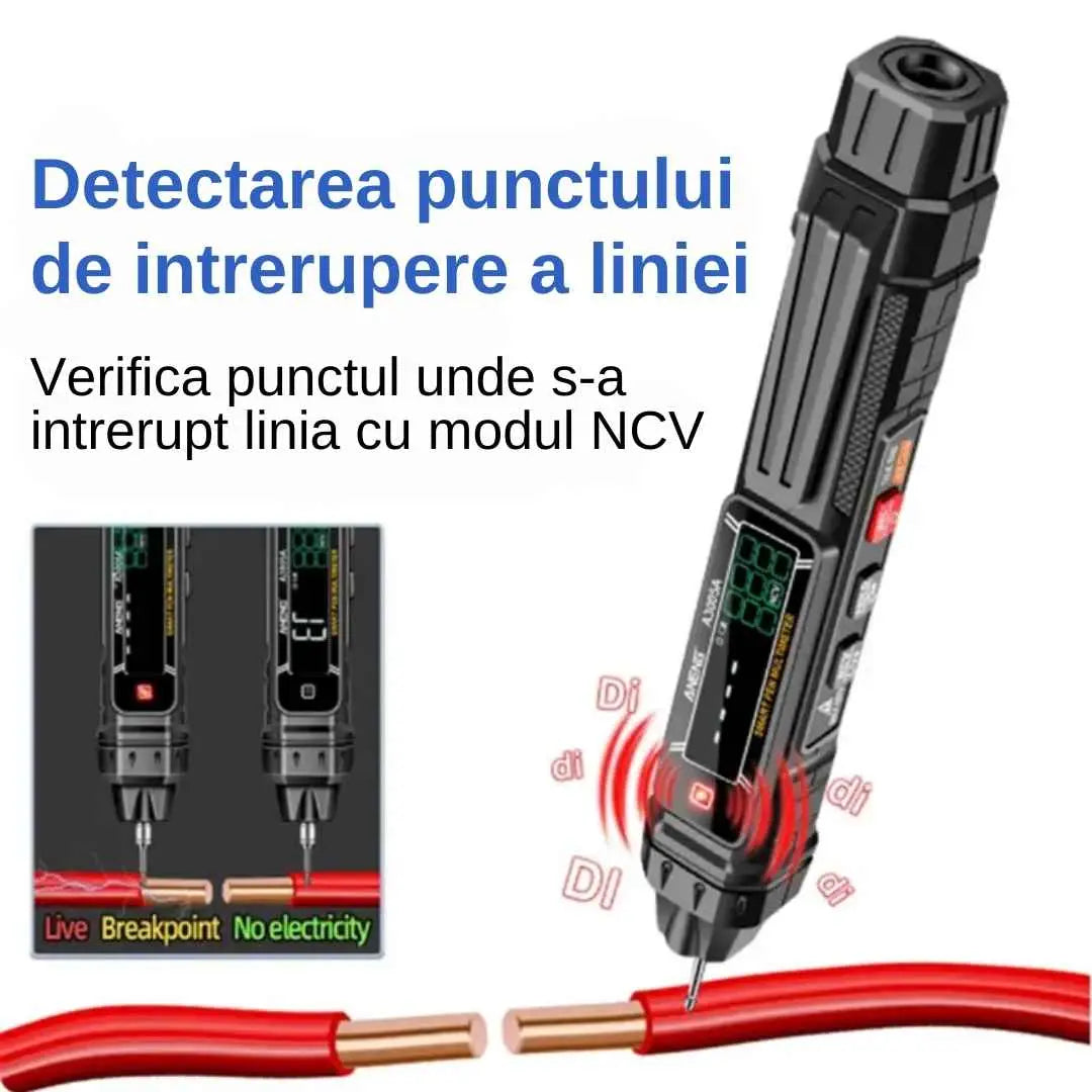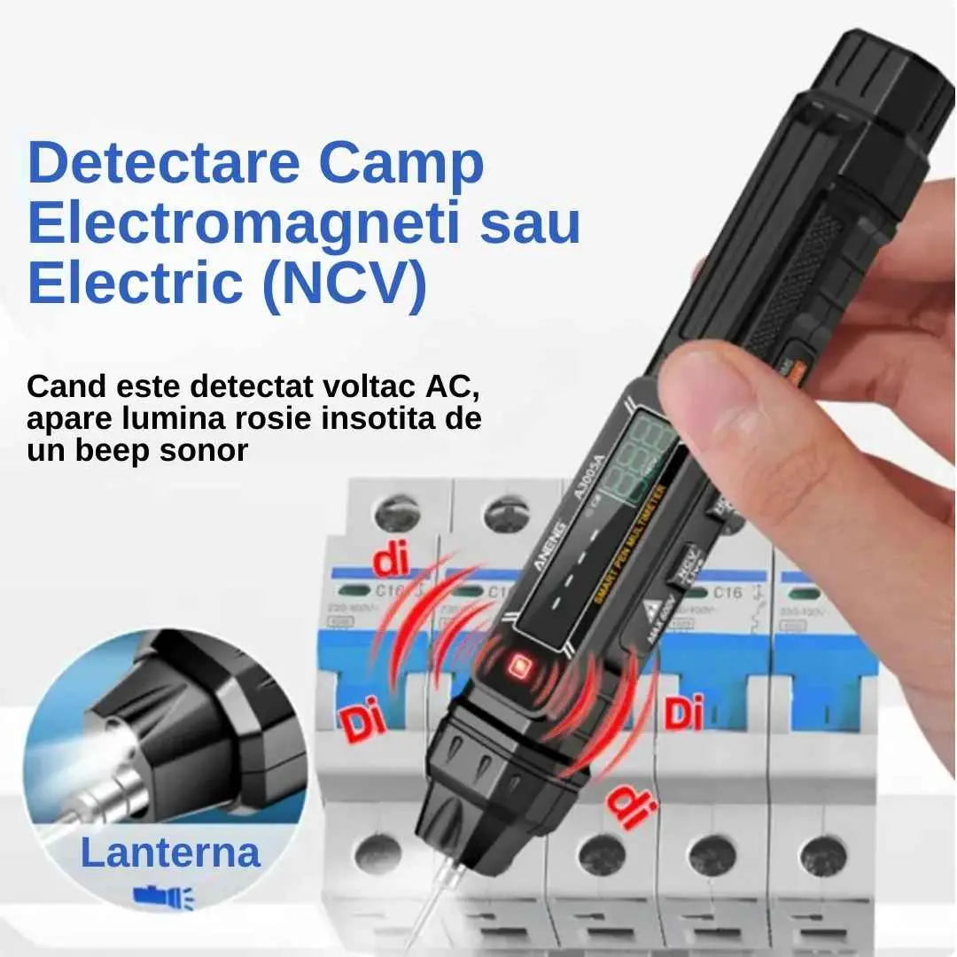 Functia NCV (Non-Contact Voltage) este o alta caracteristica deosebita a acestui multimetru inteligent. Aceasta va permite sa detectati tensiunea fara a atinge firele sau contactele directe, asigurandu-va siguranta in timpul masuratorilor.