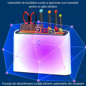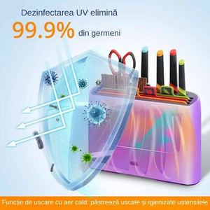Sterilizare eficienta: Aparatul utilizeaza raze UV pentru a steriliza cutitele tale cu o eficienta de 99,99%, eliminand bacteriile si virusurile daunatoare.