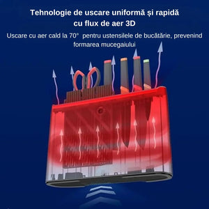 Uscare inteligenta: Dupa sterilizare, cutitele tale sunt uscate automate cu ajutorul unui flux de aer cald, prevenind ruginirea si deteriorarea.