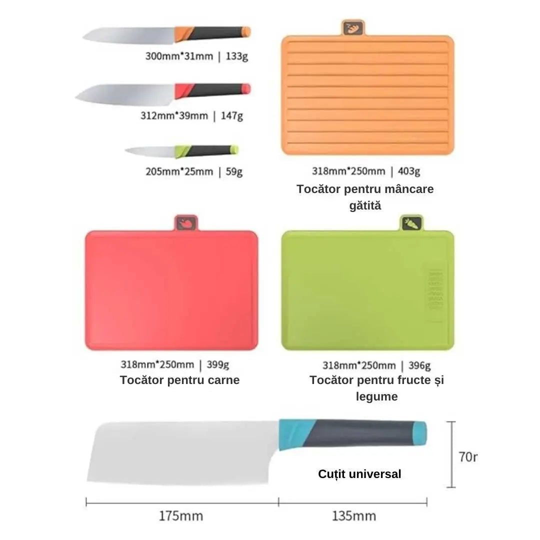 Tocatoare rezistente: Setul include 3 tocatoare rezistente din plastic ABS, perfecte pentru a taia o varietate de alimente.