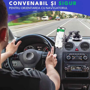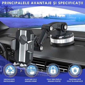 Sistem de Prindere Avansat: Ventuza reglabila garanteaza o fixare solida pe parbriz sau tabloul de bord. Siguranta telefonului tau este acum prioritatea noastra!