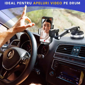 Suport auto pentru telefon, sistem de prindere a ventuzei reglabile, ajustare unghi suport si brat 360 la Grade, telescopic, reglabil si rotativ